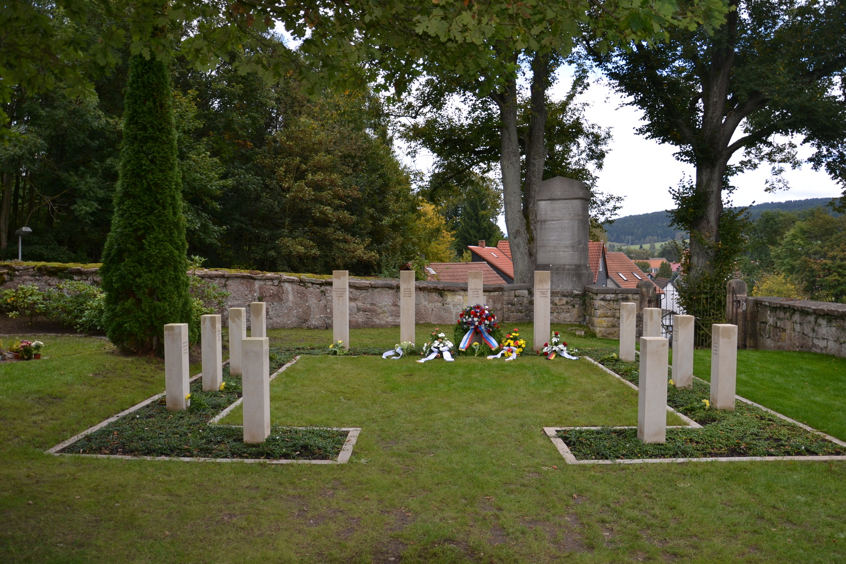 Auf dem Friedhof im Ortsteil Dietzhausen befindet sich eine Kriegsgräberstätte für vier sowjetische Zwangsarbeiter/innen und 10 Kinder, welche in den Jahren 1941 bis 1945 aus der damaligen Sowjetunion nach Deutschland deportiert wurden und hier ums Leben kamen. Im Jahr 2014 wurde in enger Zusammenarbeit mit dem Volksbund Deutsche Kriegsgräberfürsorge und weiteren Institutionen eine Neugestaltung dieser Kriegsgräberstätte umgesetzt. Um speziell an das Schicksal der hier bestatteten Kinder zu erinnern, wurde der bereits stark verwitterte, monumentale Obelisk durch 14 Natursteinstelen ersetzt. Die vier großen Stelen wurden mit den Namen der Erwachsenen, die zehn kleineren Stelen mit den Namen der Kinder versehen.